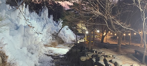 또 얼음동산 산책로에 조명시설을 설치하여 야간에도 빙벽을 감상할 수 있도록 편의를 제공하고 있다.