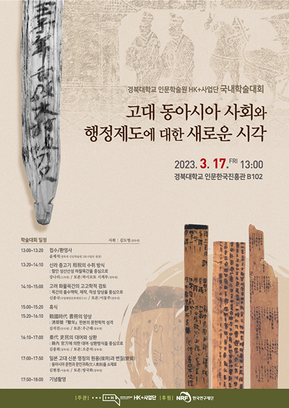 경북대 인문학술원(원장 윤재석)은 17일 오후 1시 경북대 인문한국진흥관에서 '고대 동아시아 사회와 행정제도에 대한 새로운 시각'을 주제로 학술대회를 개최한다고 14일 밝혔다.