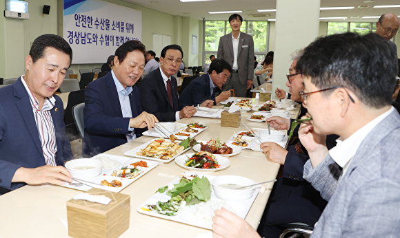 [아이뉴스24 이상욱 기자] 경상남도는 10일 경남도청 내 구내식당을 이용하는 직원을 대상으로 경남지역 생산 수산물의 소비 촉진을 위한 홍보·판촉 행사를 진행했다.