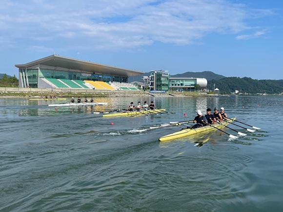 [아이뉴스24 안영록 기자] 충북 충주시 탄금호 조정경기장이 조정 선수들의 하계 전지훈련지로 주목받고 있다.