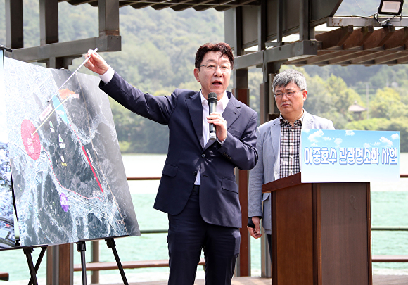 우범기 전주시장은 22일 아중호수 일원에서 ‘아중호수 관광명소화 사업’ 관련 현장 브리핑을 가졌다.