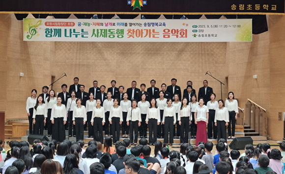 지난 5일 송림초등학교에서 포항시립합창단 사제동행 찾아가는 음악회가 열리고 있다. [사진=포항시청]