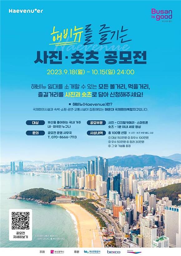 [아이뉴스24 정예진 기자] 부산광역시가 11일부터 내달 15일까지 부산 해운대 국제회의복합지구 활성화 사업의 일환으로 ‘해비뉴(HAEVENUE) 사진·영상 공모전’을 개최한다.