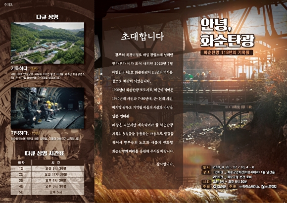 이와 함께 그간의 지나온 시간을 되돌아보는 ‘화순광업소를 기록하다’와 화순광업소에 청춘을 바친 사람들의 이야기를 담은 ‘화순광업소를 기억하다’의 영상도 상영한다.