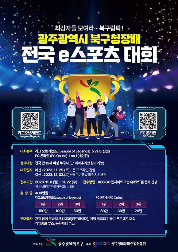 한편, 북구는 지난 2월 e스포츠 활성화를 위해 광주정보문화산업진흥원과 업무협약을 체결하고 이후 게임산업 진흥에 관한 조례를 제정하는 등 지역 게임산업 활성화에 관심을 쏟고 있다.