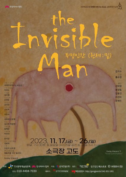 연극 ‘투명인간’은 국제연극연구소 H.U.E의 18번째 정기공연으로 홍주영이 연출하고 강미영, 문성필, 임황건, 이진아, 문혜인 배우들이 출연한다.