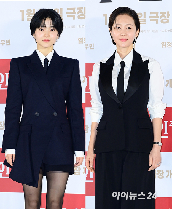 배우 김태리와 염정아가 3일 오후 서울 CGV용산아이파크몰에서 열린 영화 '외계인 2부'(감독 최동훈) 언론시사회에 참석하고 있다.