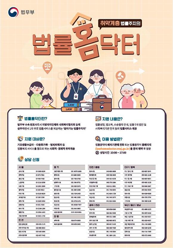 상담희망자는 평일 오전 9시부터 오후 4시까지 전화 또는 법률홈닥터 홈페이지로 사전 예약 하면 방문 상담이 가능하다.