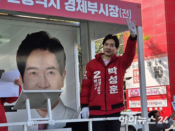 [아이뉴스24 정예진 기자] 박성훈 국민의힘 부산광역시 북구을 후보가 9일 부산 화명동 롯데마트 앞에서 열린 선거유세 현장에서 지지를 호소하고 있다.
