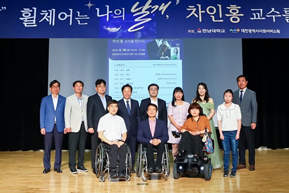 [아이뉴스24 박희석 기자] 한남대학교는 18일 56주년기념관 1층 서의필홀에서는 ‘음악과 이야기가 어우러진 명사초청 특강’의 일환으로 ‘휠체어는 나의 날개, 차인홍 교수를 만나다’ 특강을 열었다.