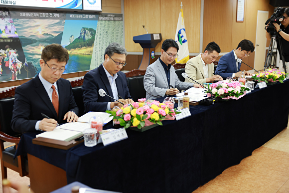 30일 고창군에 따르면 이날 오후 2시 고창군청 대회의실에서 국내 기업 4곳((주)LIG시스템, ㈜P&K INC, 영풍제약, 서울경제TV)과 3000억원 상당의 ‘명사십리 해양관광지 조성사업 투자협약식’이 열렸다.