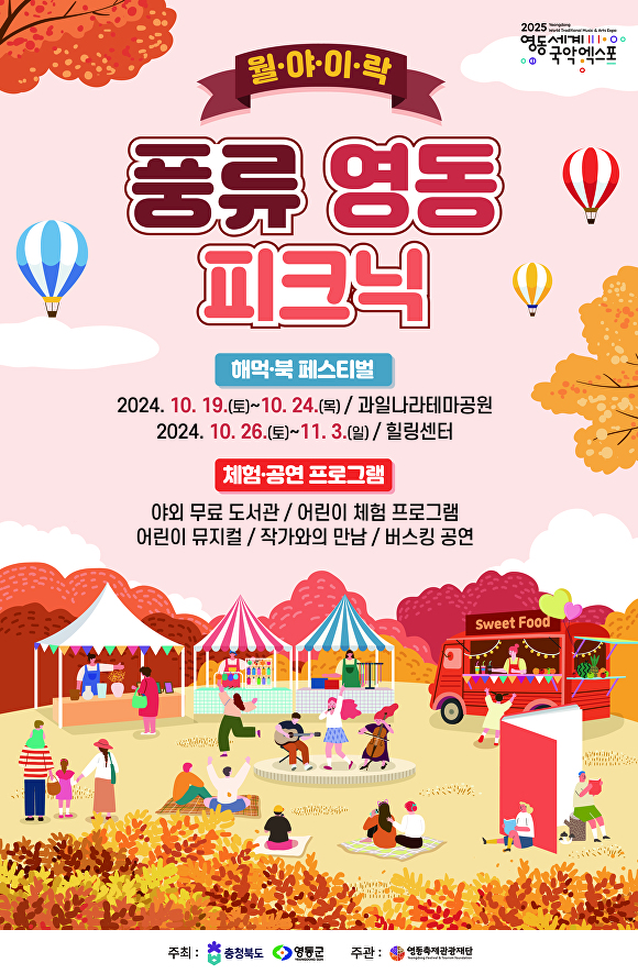 ‘해먹·북 페스티벌’을 주제로 열리는 ‘영동 풍류 피크닉’은 2025 영동세계국악엑스포와 연계한 체류형 관광 활성화를 위해 마련됐다.