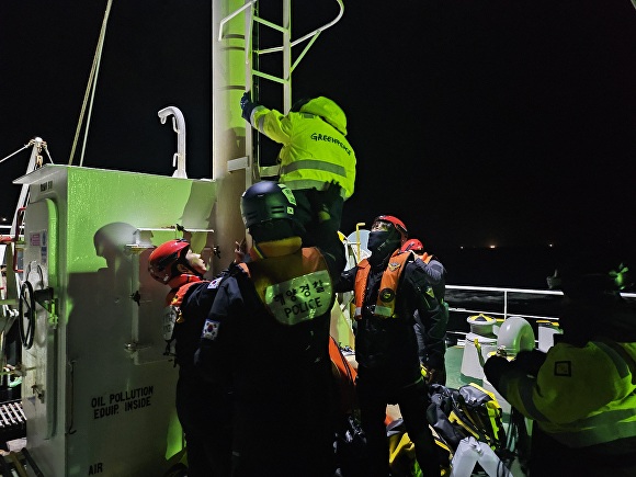 경기도 평택해양경찰서는 선박침입과 업무방해 혐의로 그린피스 국제 활동가 4명을 현행범으로 체포해 조사 중이라고 2일 밝혔다.