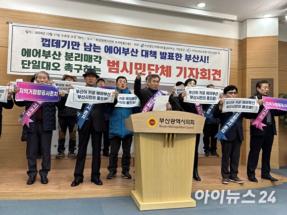 단체는 “지난 2022년 조원태 한진그룹 회장이 ‘통합 LCC는 진에어를 중심으로 인천공항을 허브로 삼을 것’이라고 발표한 뒤부터 부산시민은 에어부산이 대한항공으로부터 독립할 수 있는 분리매각을 촉구해 왔다”며 “그간 에어부산 분리매각을 실행할 몇 번의 기회가 있었고 충분한 명분과 타당성도 있었다”고 했다.