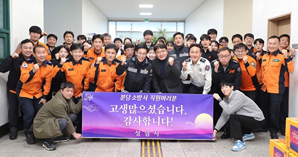 시는 지난 7일 분당소방서와 성남소방서를 비롯한 13개 119안전센터 및 2개 119구조대 등 17개소를 방문하여 귤과 떡을 전달하며 감사한 마음을 전했다.