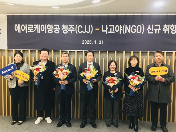에어로케이는 이날 청주공항에서 강병호 대표, 성승면 청주공항장, 유희남 충북도 균형발전과장 등이 참석한 가운데 청주~일본 나고야 정기노선 취항식을 가졌다.
