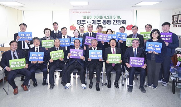 이틀 일정으로 제주를 방문한 강기정 시장은 첫날인 2일 제주4·3평화기념관 유족회 사무실에서 ‘한강이 이어준 4·3과 5·18 광주↔제주 동행 간담회’를 열어 ‘평화연대 방안’을 논의했다.