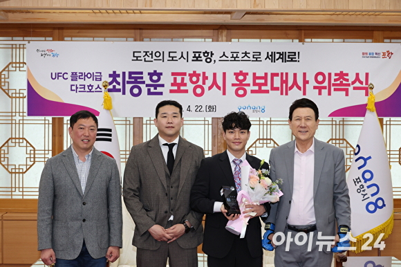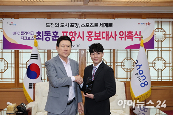 [아이뉴스24 이진우 기자] 경북 포항시는 22일 세계적인 종합격투기 무대인 UFC에서 활약 중인 플라이급 파이터 최동훈 선수를 포항시 홍보대사로 위촉했다.
