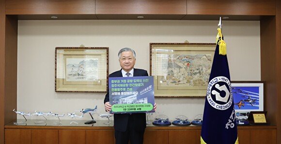 김윤배 청주대 총장도 청주공항 민간 전용 활주로 건설을 촉구하는 캠페인에 동참했다.