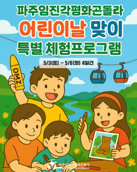 한윤자 관광과장은 “디엠지(DMZ)라는 공간이 가진 상징성과 역사성을 바탕으로, 어린이날에 가족이 함께 의미 있는 시간을 보낼 수 있도록 다양한 프로그램을 마련했다”라며 “곤돌라 탑승과 함께 즐기는 이번 체험 행사가 아이들에게는 특별한 추억을, 부모에게는 감동과 교육적 가치를 선사하길 기대한다”라고 전했다.