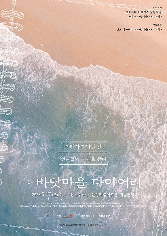 일본 거장 고레에다 히로카즈 감독의 동명 영화를 원작으로 한 이번 연극은 한적한 바닷가 마을을 배경으로 세 자매와 이복동생이 서로를 이해하고 보듬으며 진정한 가족으로 나아가는 과정을 잔잔하게 그려낸다.