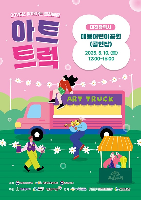 [아이뉴스24 박희석 기자] 대전문화재단은 오는 10일 낮 12시부터 오후 4시까지 대전 대덕구 법동 매봉어린이공원에서 한국문화예술위원회 기획행사인 찾아가는 문화배달 ‘아트트럭’을 개최한다고 밝혔다.
