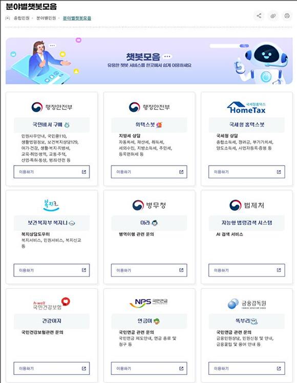유용한 챗봇을 한데 모아 신속한 민원 처리 기대