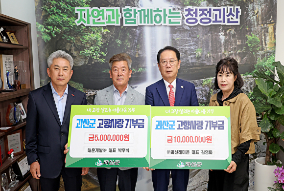 김영화·박후식 대표는 “고향사랑기부제를 통해 괴산군을 응원하는 마음을 전할 수 있어 매우 뜻깊다”며 “앞으로도 괴산군이 더욱 발전하는 모습을 기대한다”고 입을 모았다.