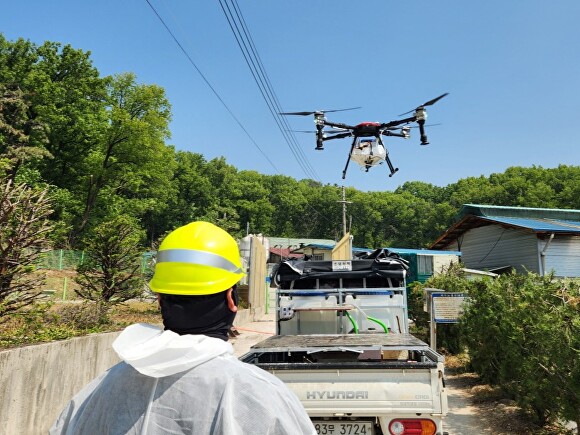안성시, ASF 차단 위해 드론 활용 멧돼지 기피제 집중 살포