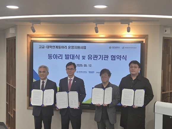 [아이뉴스24 박희석 기자] 대전관광공사는 12일 대전예술고등학교에서 목원대학교, 대전예술고등학교, ㈜디몽과 4자 간 산학협력 업무협약을 체결했다. 이번 협약은 교육부의 교육발전특구 시범사업 일환으로 2024년 대전시가 유치한 연간 200억원(5년간) 규모의 사업 추진 협력체계 구축을 위해 마련됐다.