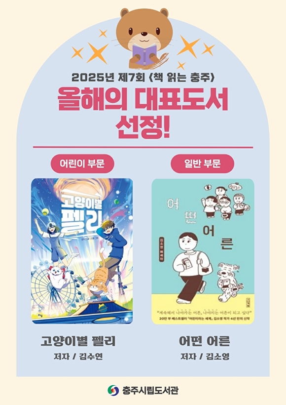[아이뉴스24 윤재원 기자] 충북 충주시는 올해 대표 도서로 ‘고양이별 펠리’와 ‘어떤 어른’이 각각 선정됐다고 14일 밝혔다.