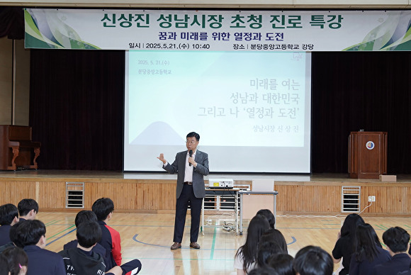 [아이뉴스24 정재수 기자] 신상진 성남시장이 21일 분당중앙고등학교에서 ‘꿈과 미래를 위한 열정과 도전’을 주제로 진로 특강을 했다.