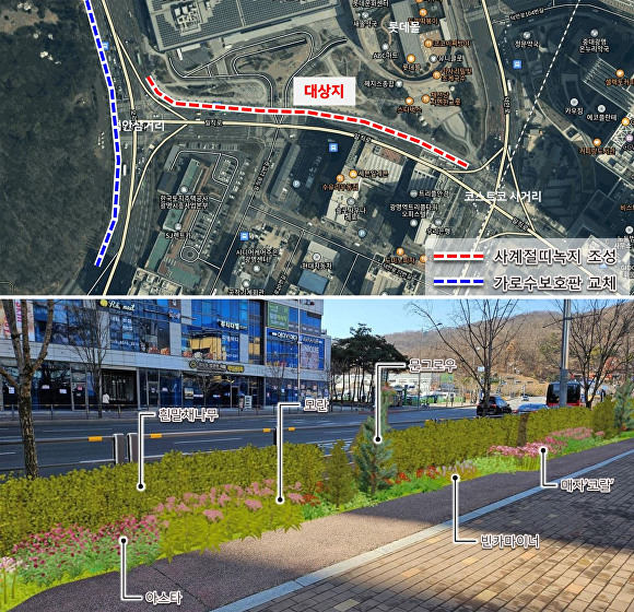 이번 사업으로 도로변을 생기 있는 녹지대로 탈바꿈시키는 것은 물론 대상지 양쪽에 위치한 서독산과 성채산 사이의 단절된 녹지축을 연결하는 기능도 수행할 것으로 기대한다고 시는 설명했다.