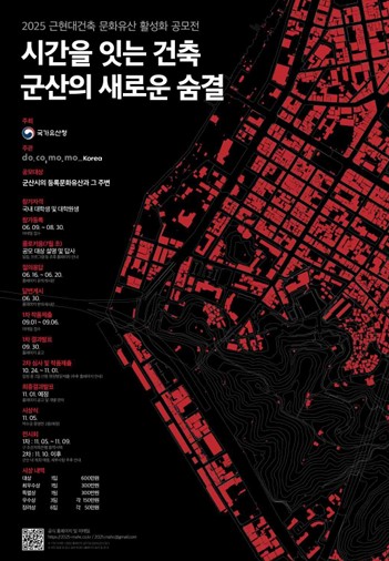 공모 접수는 6월 9일부터 8월 30일까지 온라인으로 진행된다. 공모는 ‘군산 내항 역사문화공간’ 등 군산시 소재 등록문화유산과 근현대유산이 집중되어 있는 주변부를 대상으로 한다.