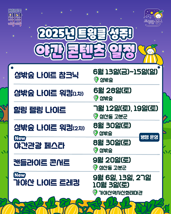 전 세대를 아우르는 ‘트윙클 성주' 야간콘텐츠 일정 포스터 [사진=성주군]