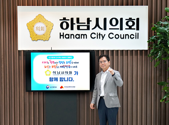 [아이뉴스24 정재수 기자] 금광연 하남시의회 의장이 지난 28일 ‘인구문제 인식개선 릴레이 캠페인’에 동참했다.