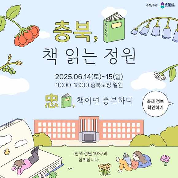 [아이뉴스24 장예린 기자] 충북도가 오는 14일과 15일, 도청 잔디광장과 하늘정원 일원에서 ‘책 읽는 정원’ 행사를 연다.