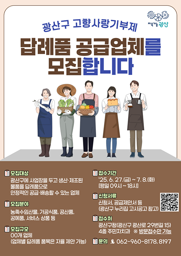 [아이뉴스24 한봉수 기자] 광주 광산구가 고향사랑기부자들에게 특별한 답례품을 제공하기 위해 답례품 공급업체를 모집한다.