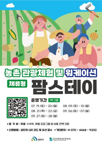 프로그램은 가족 단위 체험형 ‘팜스테이’와 직장인 대상 힐링형 ‘워케이션’으로 구성되며, 모두 대덕구 이현동 ‘소슬촌’에서 1박 2일 일정으로 진행된다.