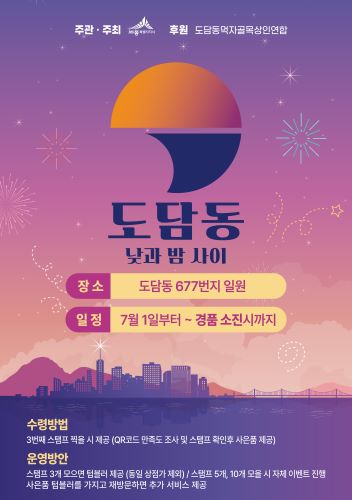 먼저 도담동 먹자골목에서는 ‘도담동 낮과 밤사이’ 이벤트를 통해 서로 다른 업소를 3번 이상 이용하고 업소 도장을 받은 방문객들에게 다회용컵(텀블러)을 제공한다. 이는 상인회가 없는 먹자골목 내 11개 점포(도담동 677번지 일원)가 뜻을 모아 추진하는 첫 번째 사업이다.