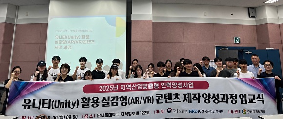 [아이뉴스24 정종윤 기자] (재)충남테크노파크(이하 충남TP)가 남서울대학교 지식정보관에서 ‘2025년도 지역·산업 맞춤형 인력양성사업 유니티(Unity) 활용 실감형(AR·VR) 콘텐츠 제작 양성과정’ 입교식을 개최했다고 1일 밝혔다.