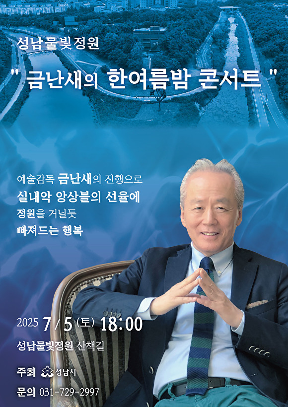[아이뉴스24 정재수 기자] 경기도 성남시는 오는 5일 성남물빛정원 두물길 산책로 야외무대에서 ‘금난새의 한여름 밤 콘서트’를 개최한다고 2일 밝혔다.