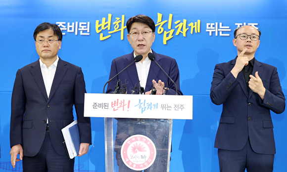 우범기 시장은 3일 시청 4층 대회의실에서 ‘민선8기 3주년 기자회견’을 열고 “민선8기 지난 3년은 대내외적으로 쉽지 않은 여정이었으나, 위기를 기회로 만들겠다는 굳은 신념으로 전주시민과 함께 과감히 도전하고 혁신하며 완전히 새로운 전주의 백년대계(百年大計)를 다져온 시간이었다”면서 “다시 처음의 마음으로 미래 100년을 바라보며 힘껏 뛰겠다”고 밝혔다.