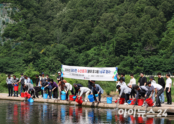 [아이뉴스24 김은경 기자] 경북 영양군이 내수면 생태계 자원 증대와 지속 가능한 어업기반 조성을 위해 붕어, 메기, 미꾸리 치어 31만 미, 다슬기 치패 55만 패를 관내 주요 하천 및 저수지 등에 방류했다.