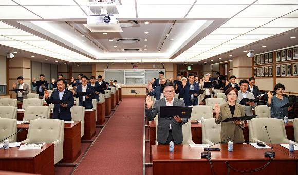 의원들은 이날 청렴특강에 앞서 ‘청렴서약식’을 가졌다. 의원들은 △법과 원칙 준수와 청렴한 사회실현에 솔선수범 △공정하고 투명한 업무수행을 통한 공익 수호 △직위를 이용한 금품·향응의 수수 및 권한 남용, 이권개입과 알선청탁 금지 △공직 수행과정에서 얻은 지식과 경험을 사적 이익 추구에 이용하지 않을 것 등 모든 의정활동에서 청렴 실천을 다짐했다.