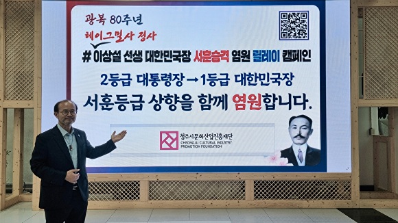 [아이뉴스24 윤재원 기자] 변광섭 충북 청주시문화산업진흥재단 대표이사가 17일 진천군 출신 보재 이상설 선생의 대한민국장 서훈 승격 염원 릴레이 캠페인에 동참했다.