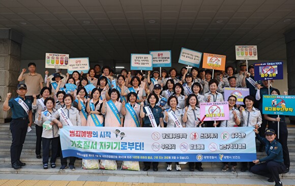 이번 캠페인은 시민들 퇴근 시간에 맞춰 일상생활 속 공동체 신뢰를 저해하는 3대 기초질서 위반행위인 △생활 질서(무단투기, 음주소란 등) △서민경제 침해(노쇼사기, 보이스피싱) △교통질서 위반(새치기유턴, 꼬리물기 등)행위 근절을 주제로 피켓과 현수막 캠페인으로 펼쳤다.