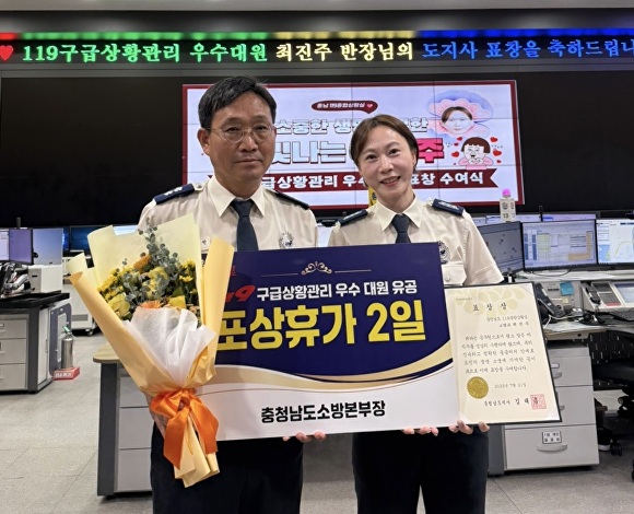 [아이뉴스24 정종윤 기자] 심정지 환자의 생명을 구한 공로로 충남소방본부 구급상황관리요원 최진주 소방교가 충남도지사 표창을 받았다.
