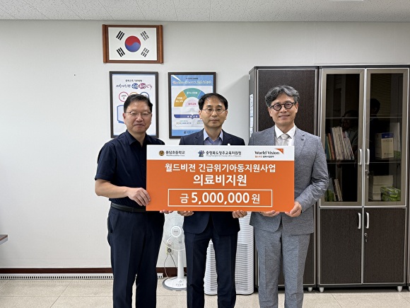 [아이뉴스24 장예린 기자] 충북 청주교육지원청(교육장 박종원)과 월드비전 충북사업본부(본부장 조성준)는 22일 청주용담초등학교에서 희귀난치질환을 앓고 있는 위기 아동을 위한 의료비(500만원) 전달식을 가졌다. 월드비전 긴급위기아동지원사업은 아동·청소년이 위기 상황을 극복하고, 건강하게 성장할 수 있는 환경 마련을 목표로 한다. 해당 의료비는 아동 치료 종료 후 병원으로 직접 입금된다.