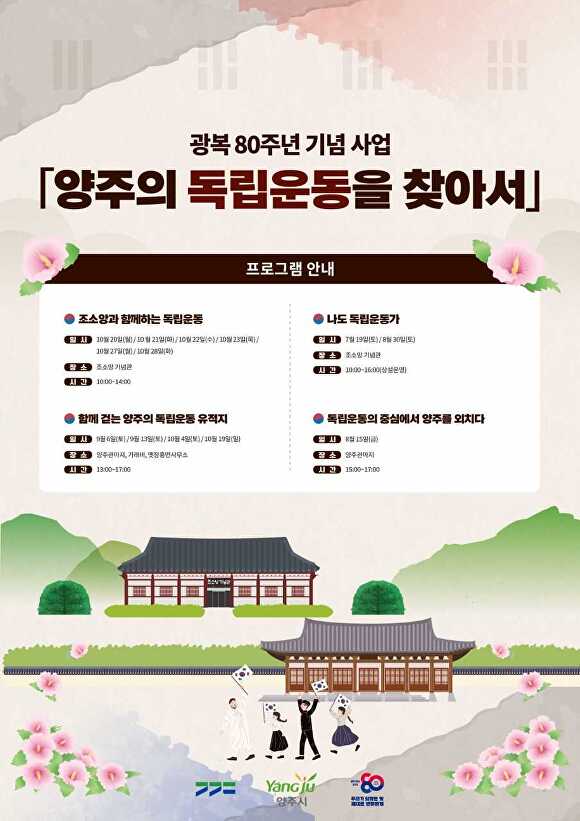이번 사업은 전 세대가 광복의 역사적 가치와 지역 항일운동의 의미를 공감할 수 있도록 기획됐으며, 조소앙 기념관과 양주관아지 등 역사적 현장을 중심으로 다양한 체험과 탐방, 문화 공연이 펼쳐질 예정이다.
